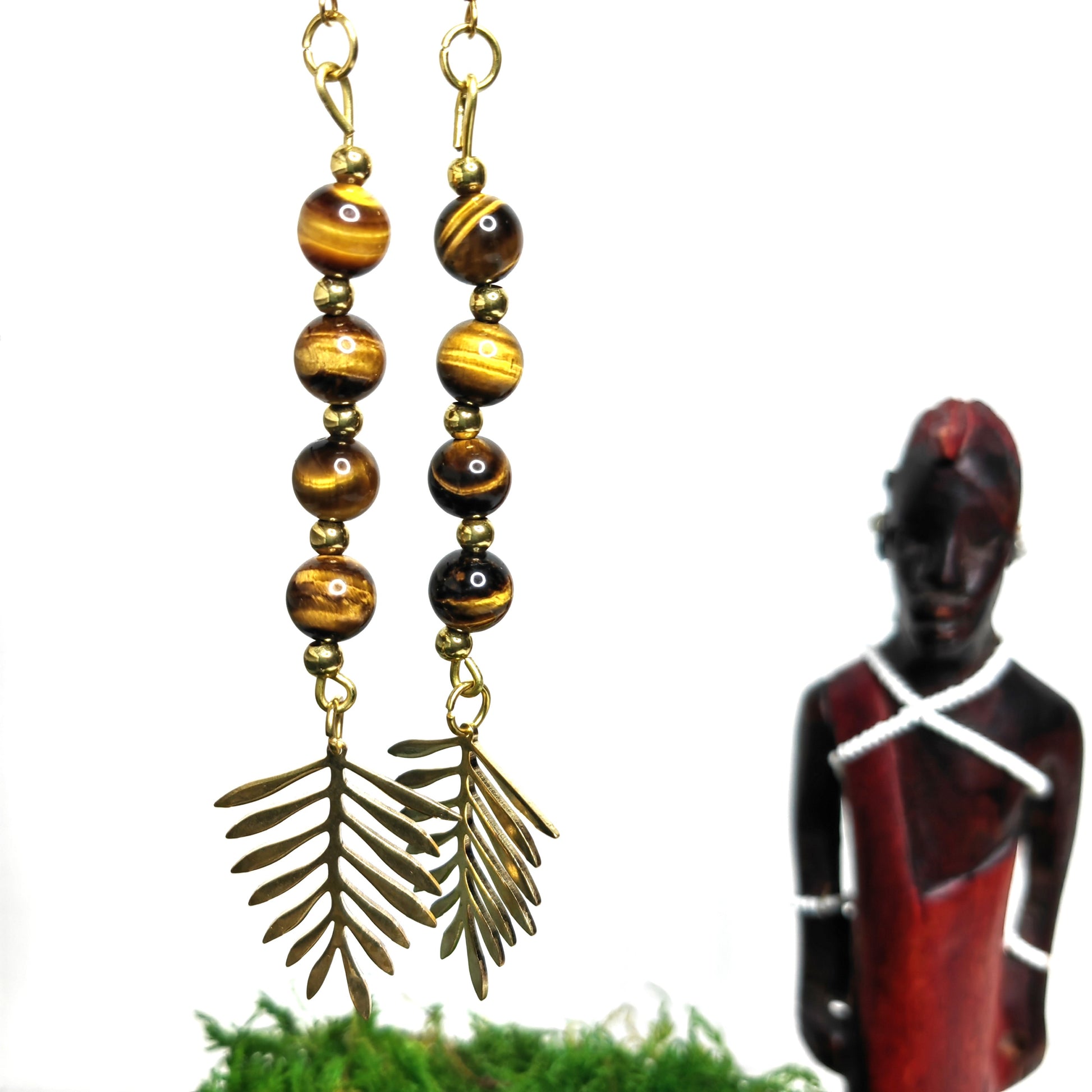 Boucle d'oreille "Feuilleta - œil de tigre"