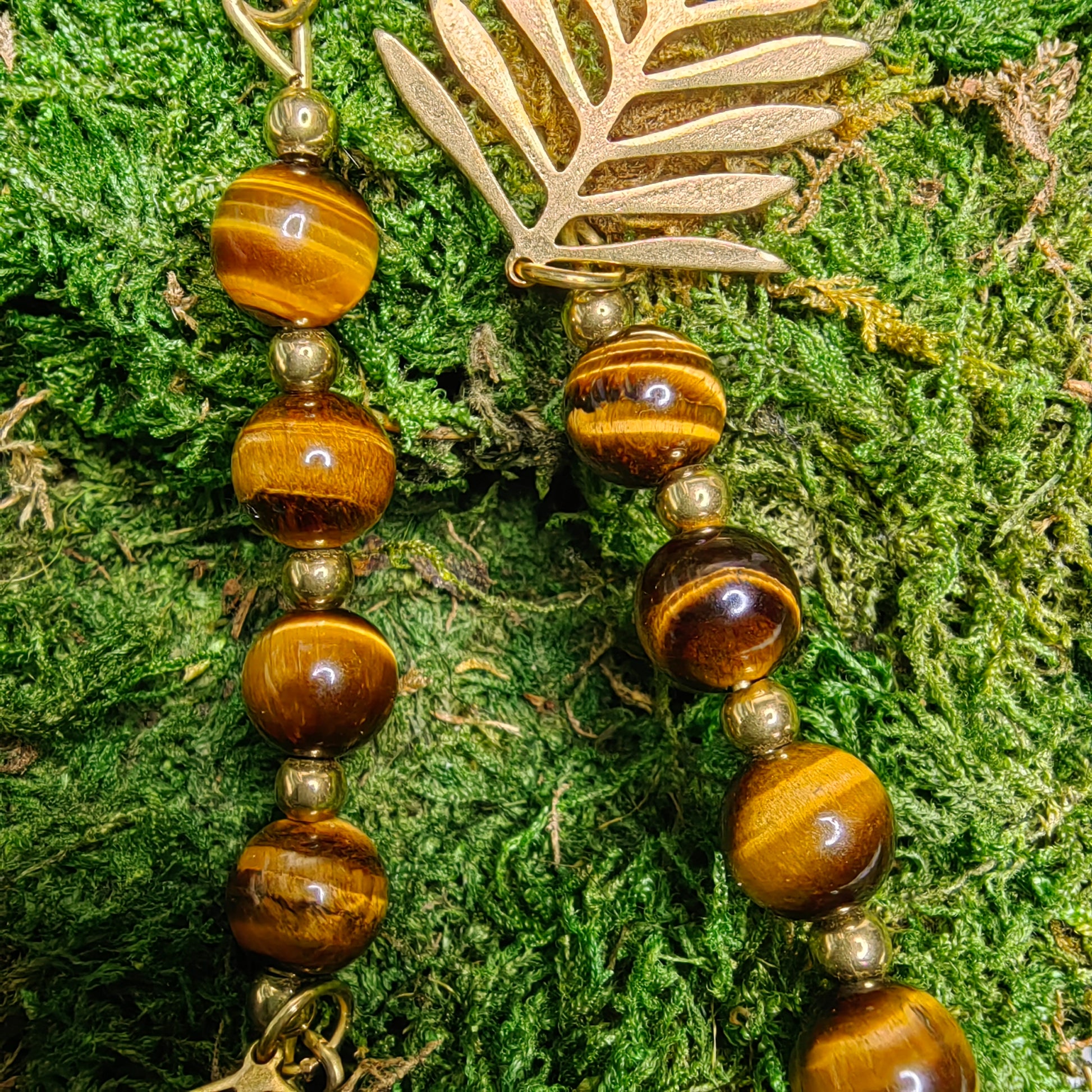 Matière : Laiton - perles naturelles d' Agate œil de tigre or marron.