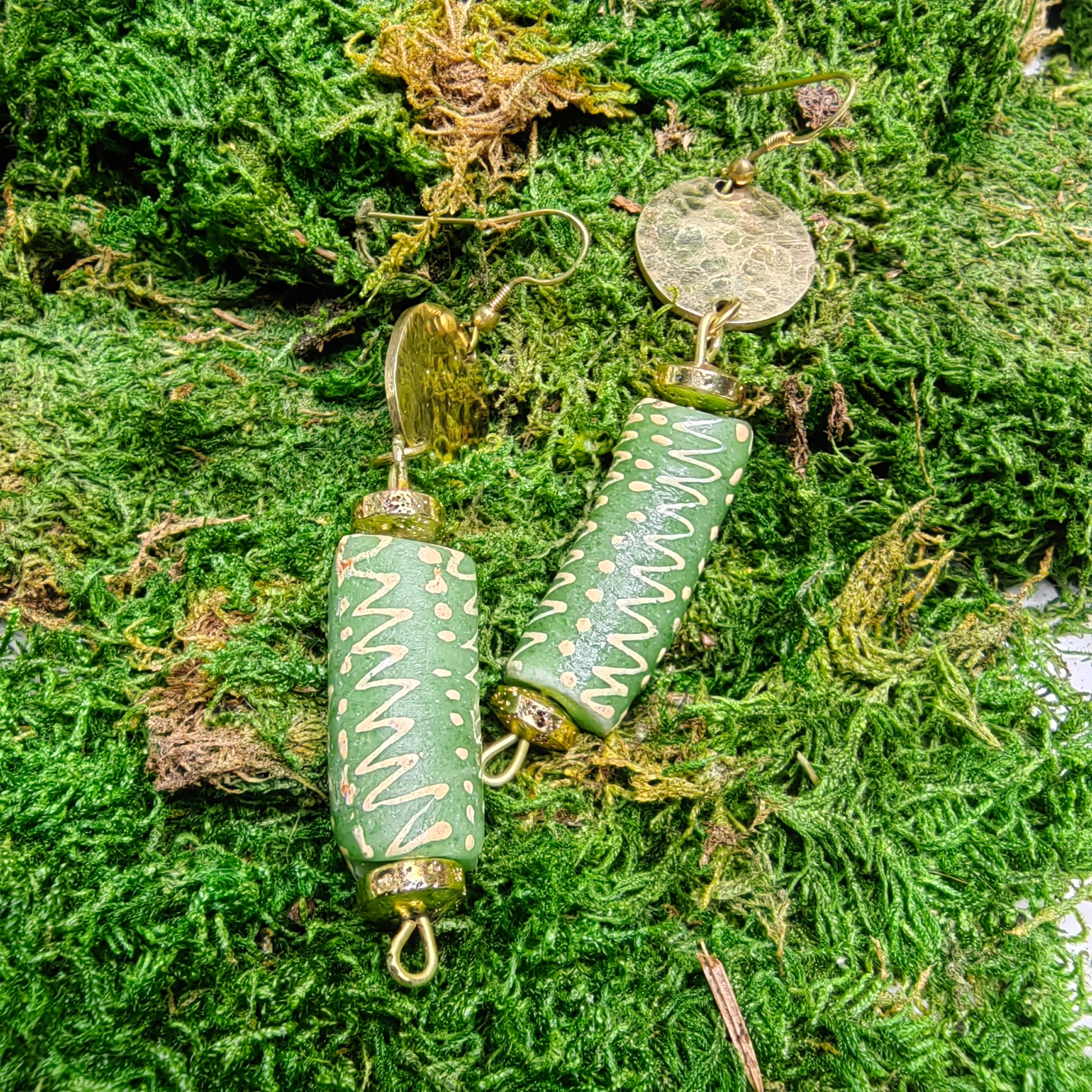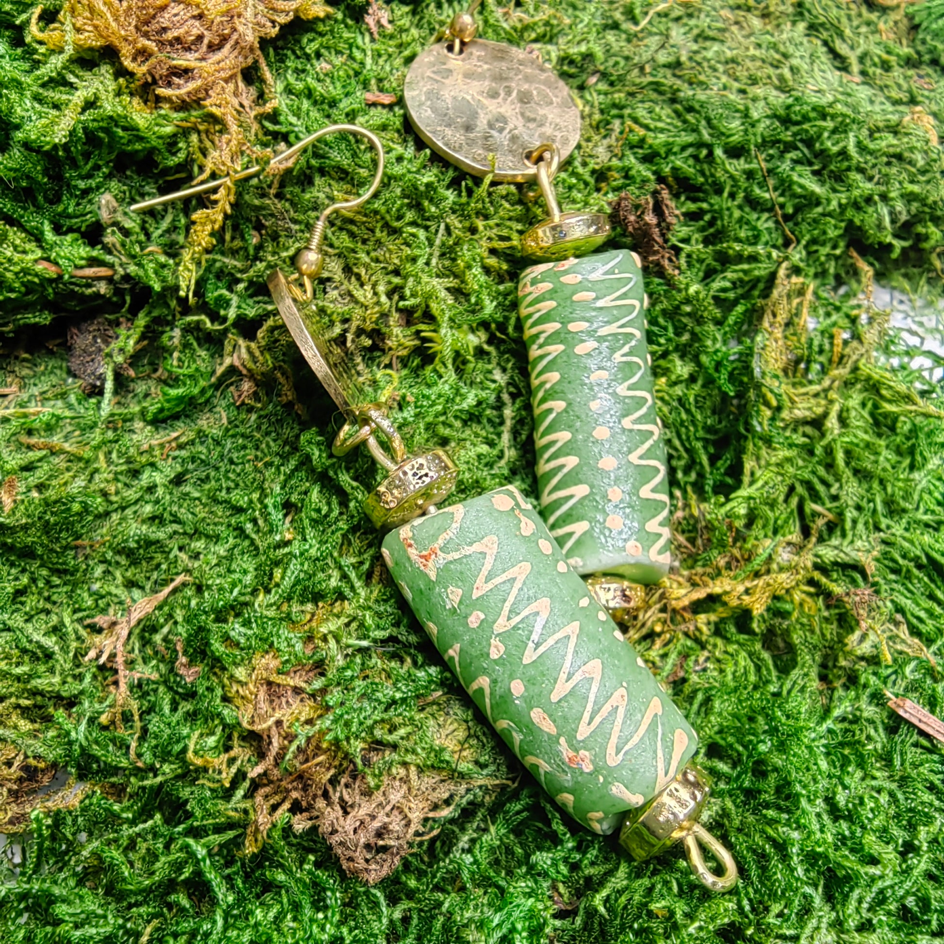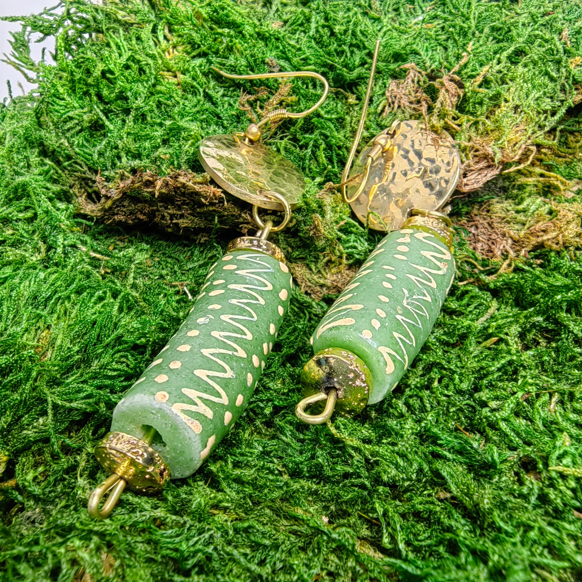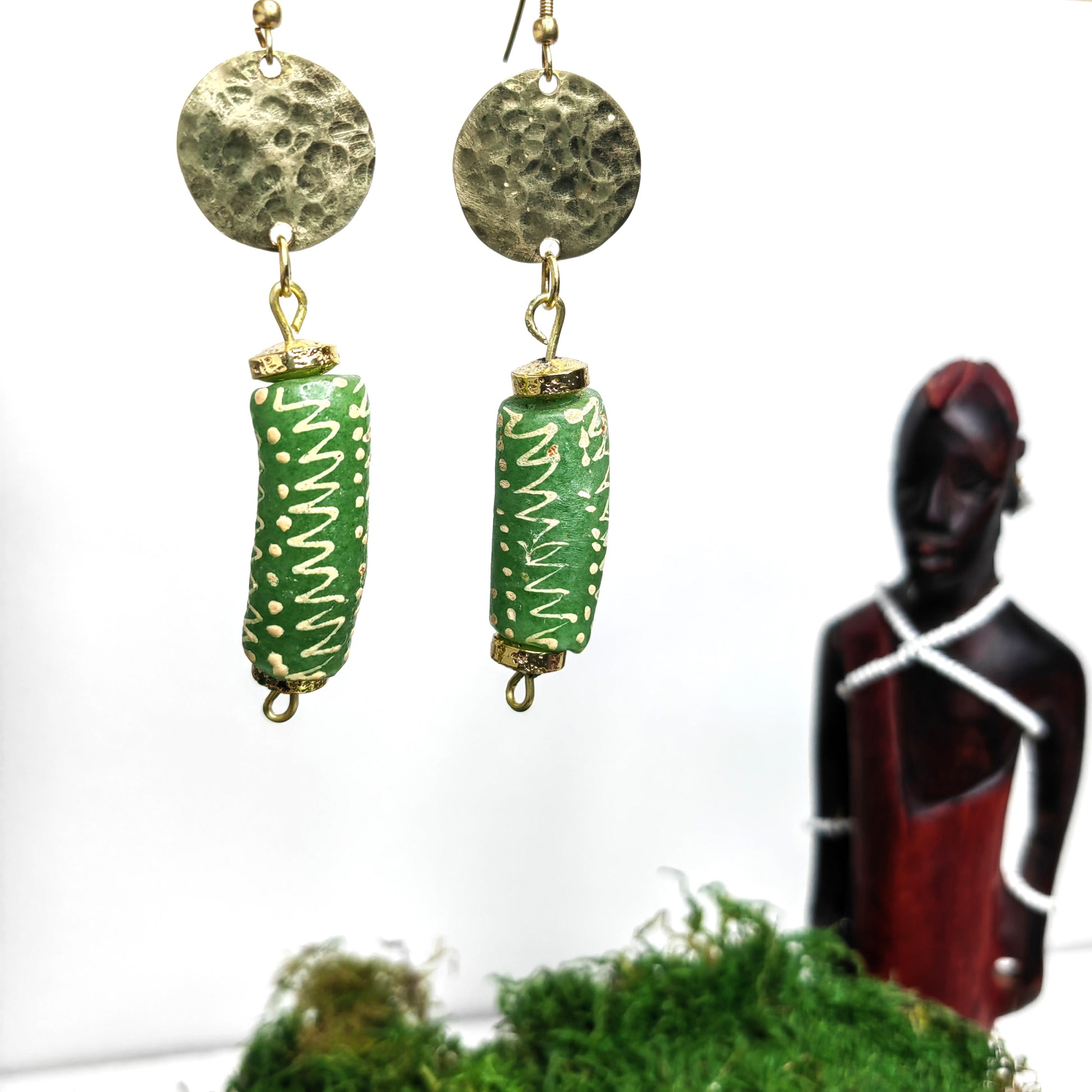 Découvrez nos magnifiques boucles d'oreilles en perles krobou (perles de verre recyclée d'origine Ghanéenne ) accessoirisées par des perles naturelles volcanique .