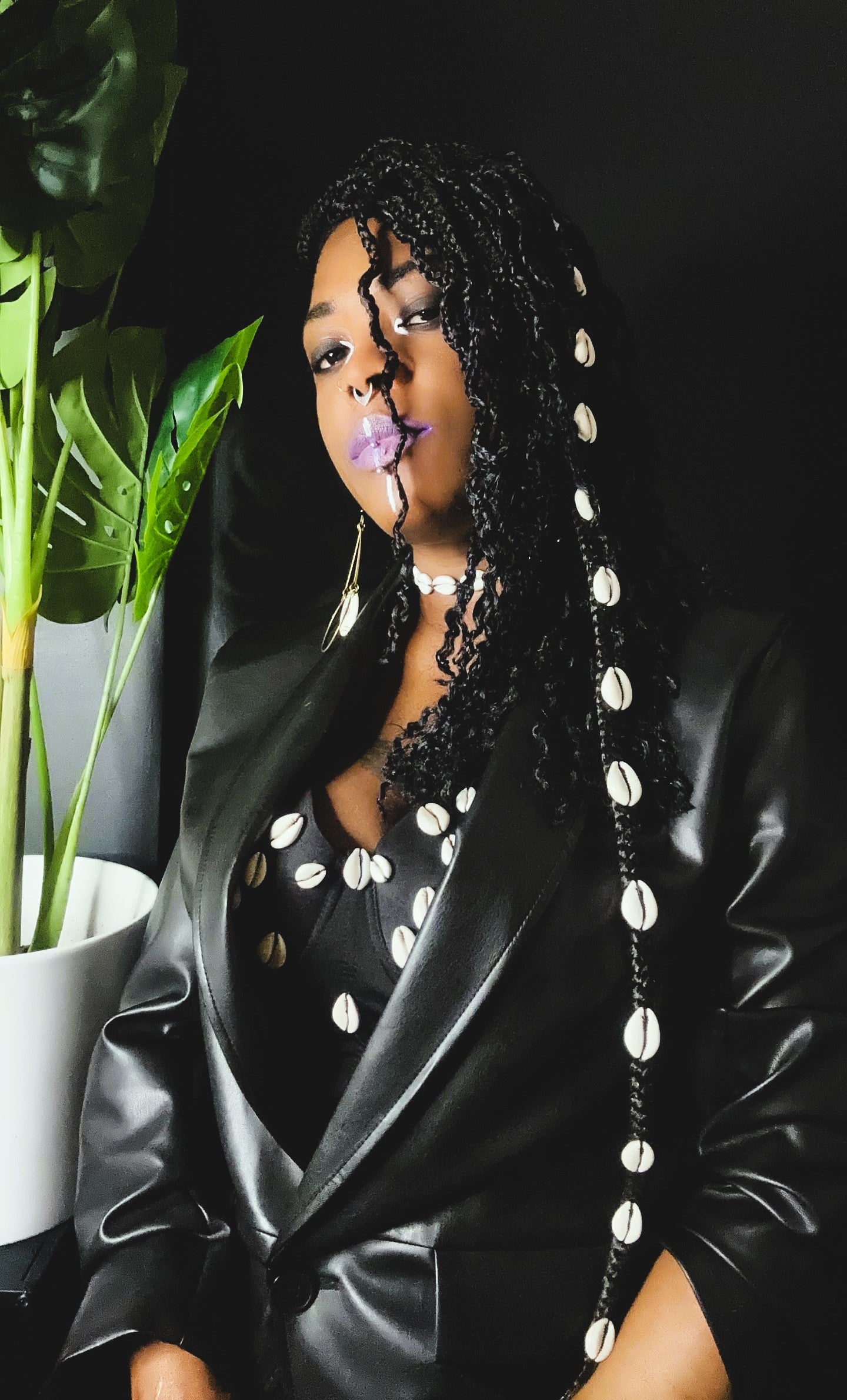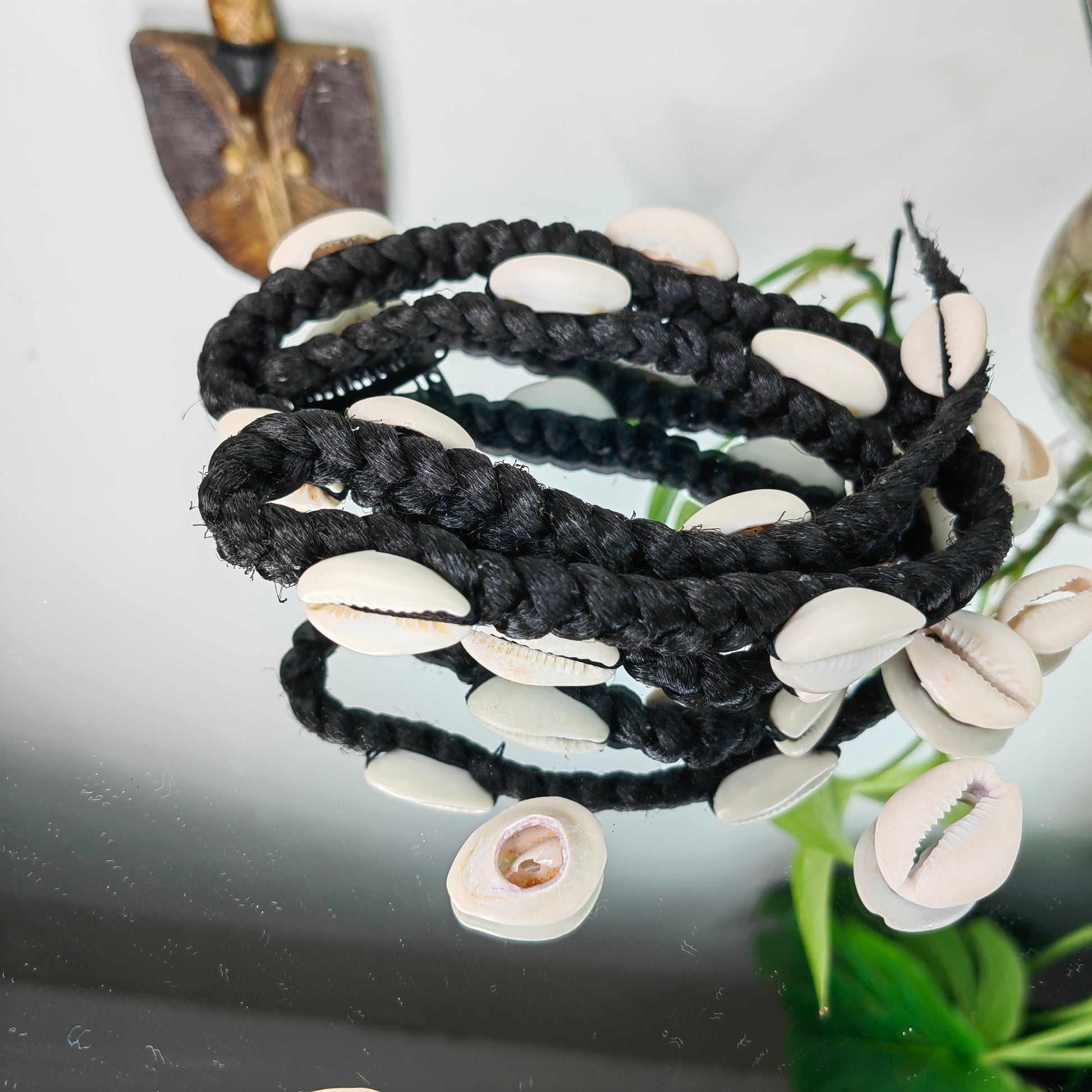 Clip en tresse noir avec cauris