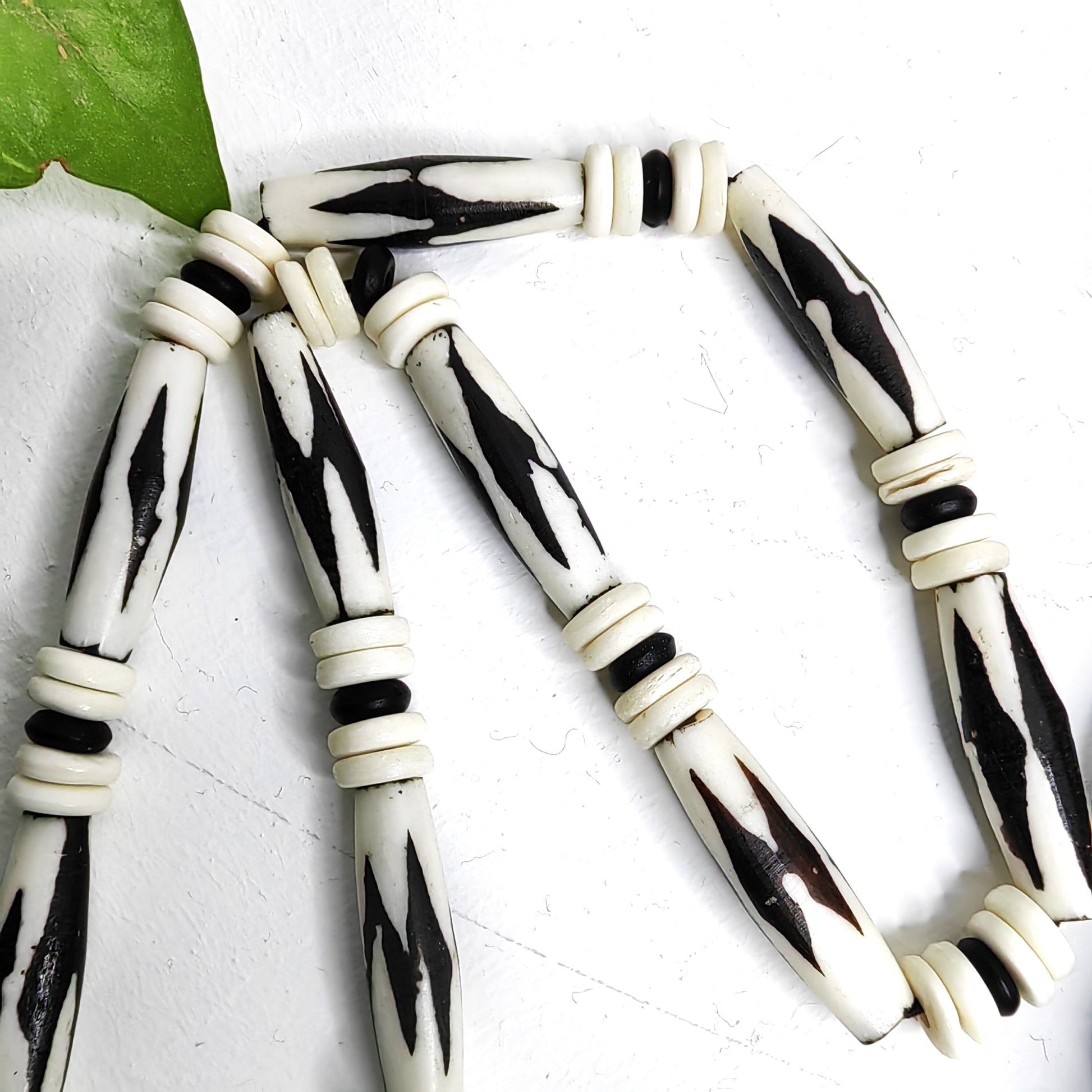 Découvrez notre magnifique collier en perles en os de batik du Kenya .