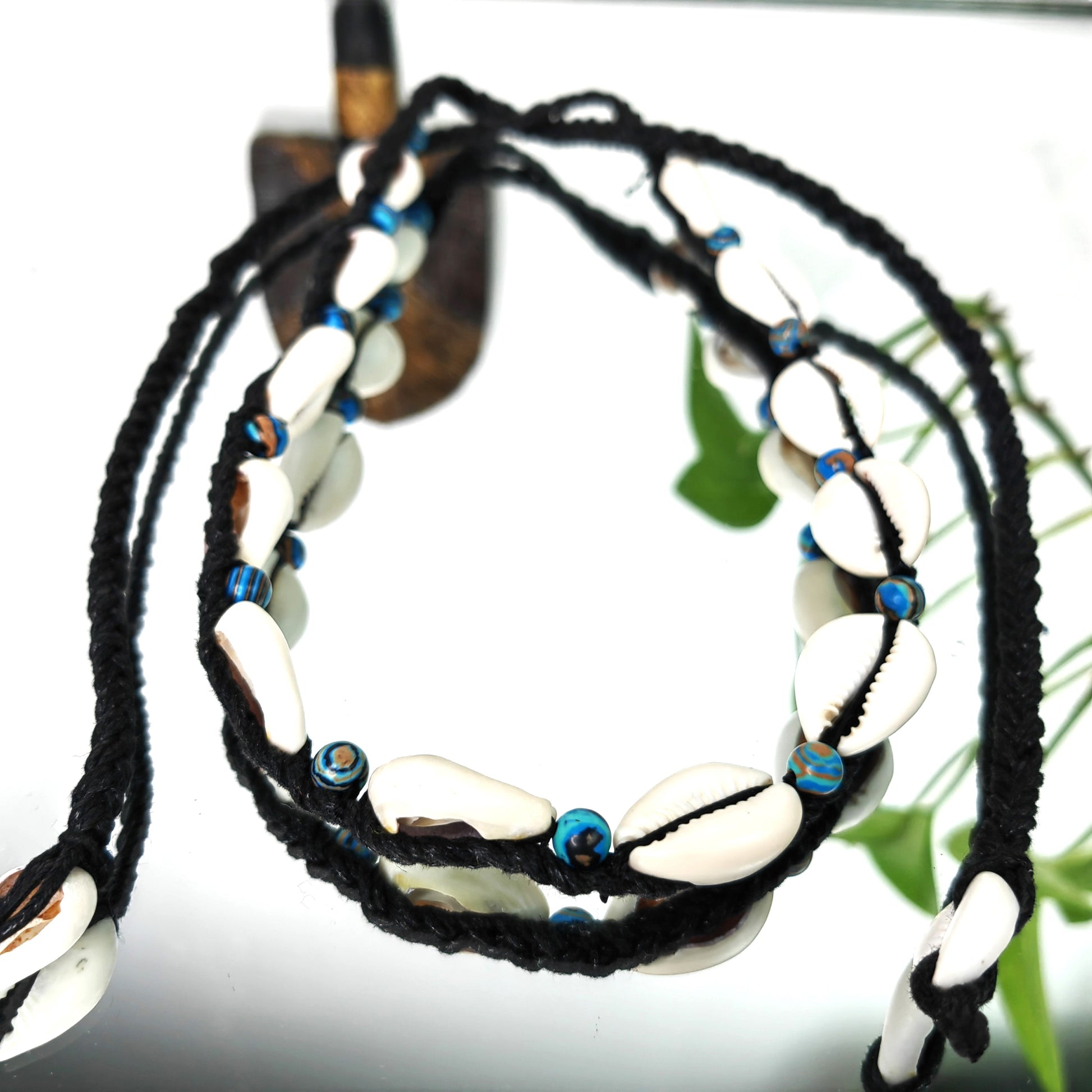 Découvrez notre magnifique collier en cauris , tressé et cousu à la main par la créatrice Sorciere Kaya à Bordeaux.