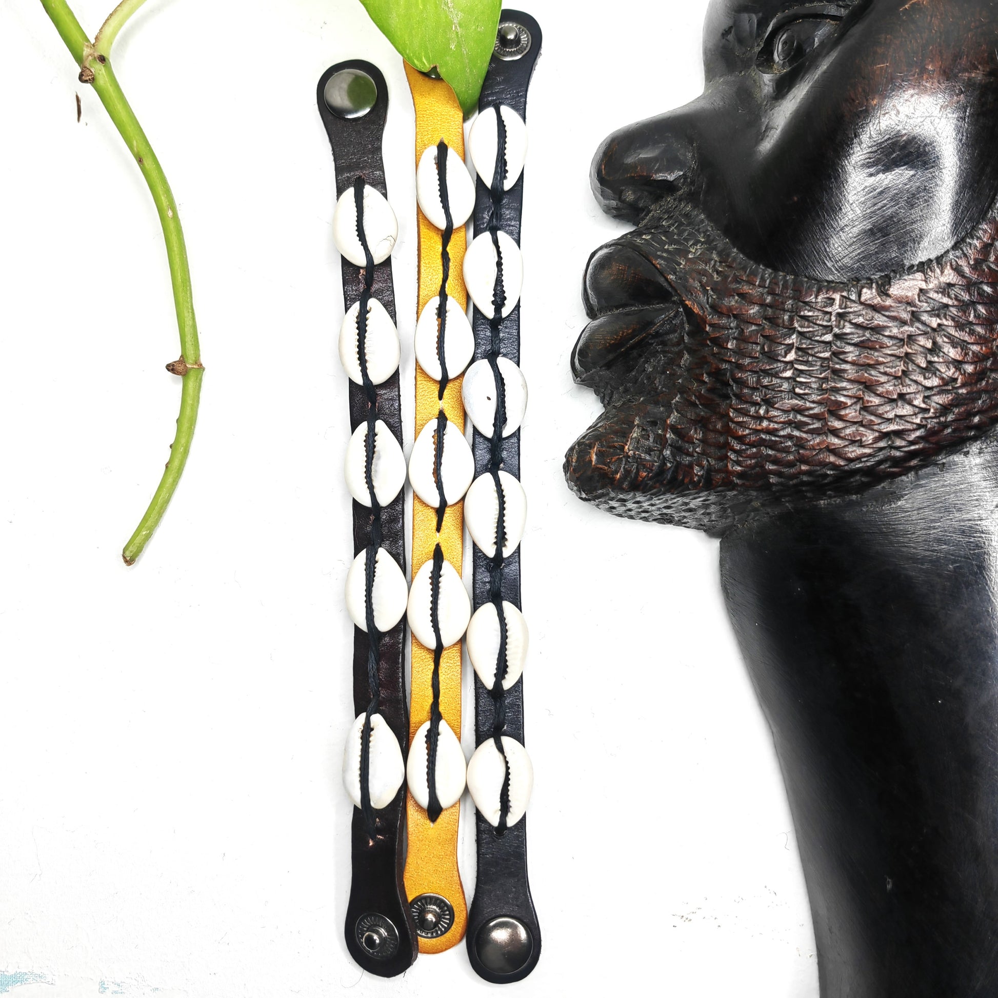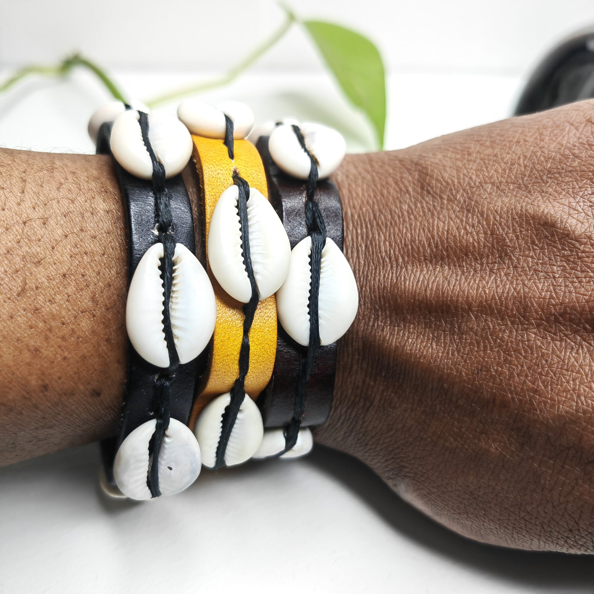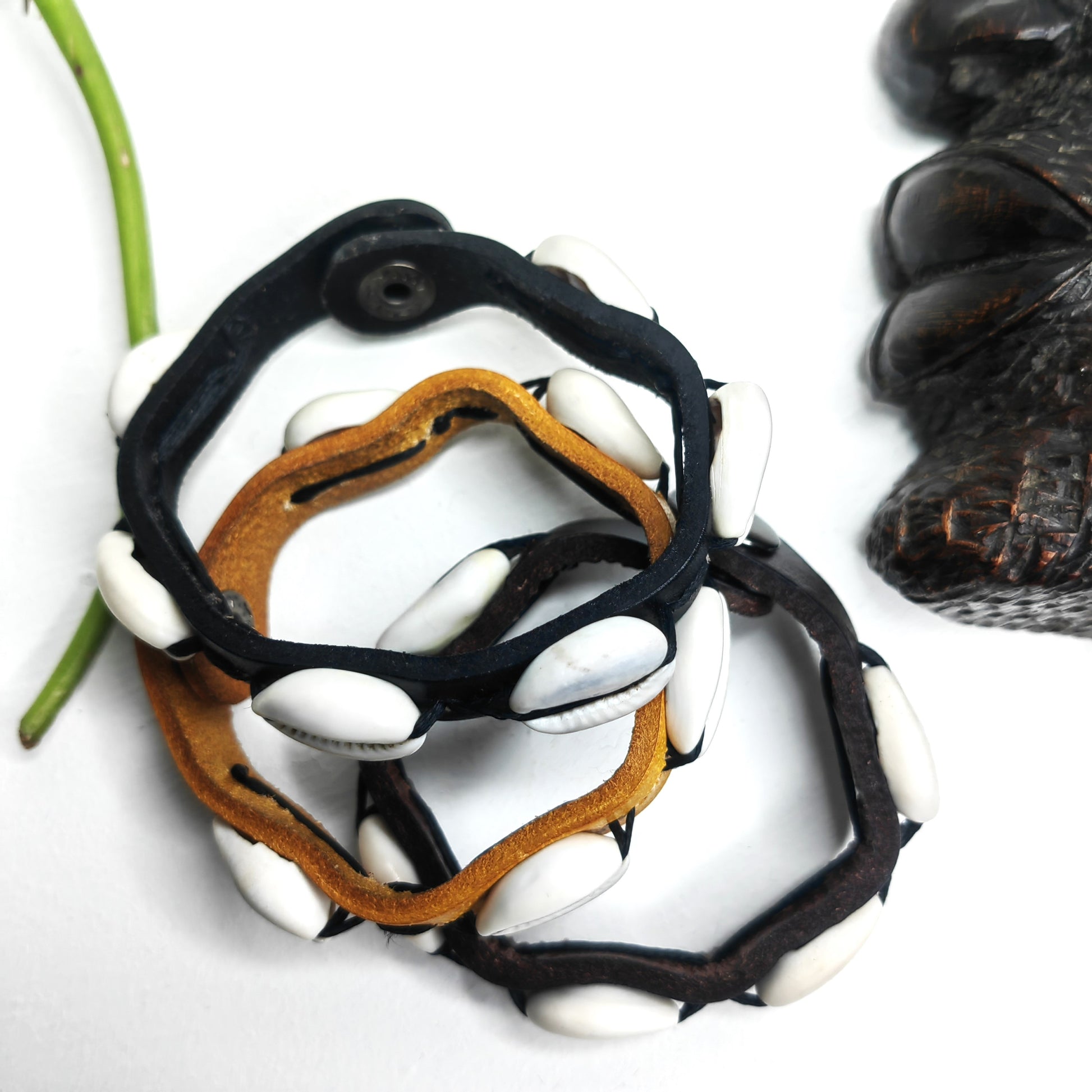 Découvrez notre Lot de 3 bracelets en cuir ;cousus avec des cauris .