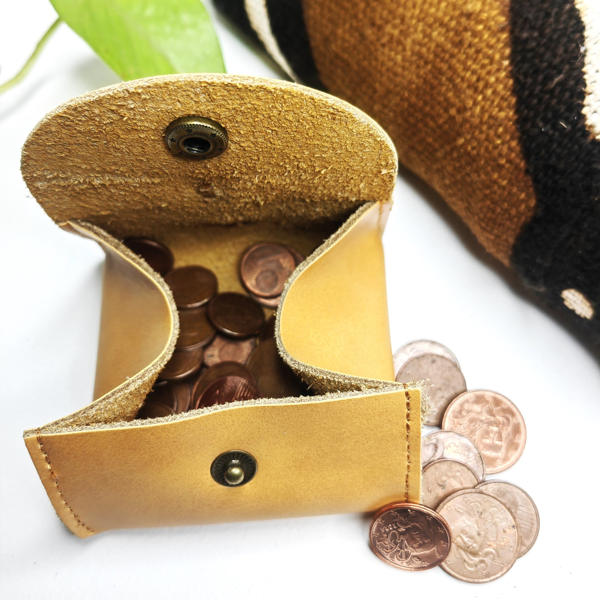 Découvrez notre petit porte-monnaie en cuir avec 1 cauris cousu comme déco.