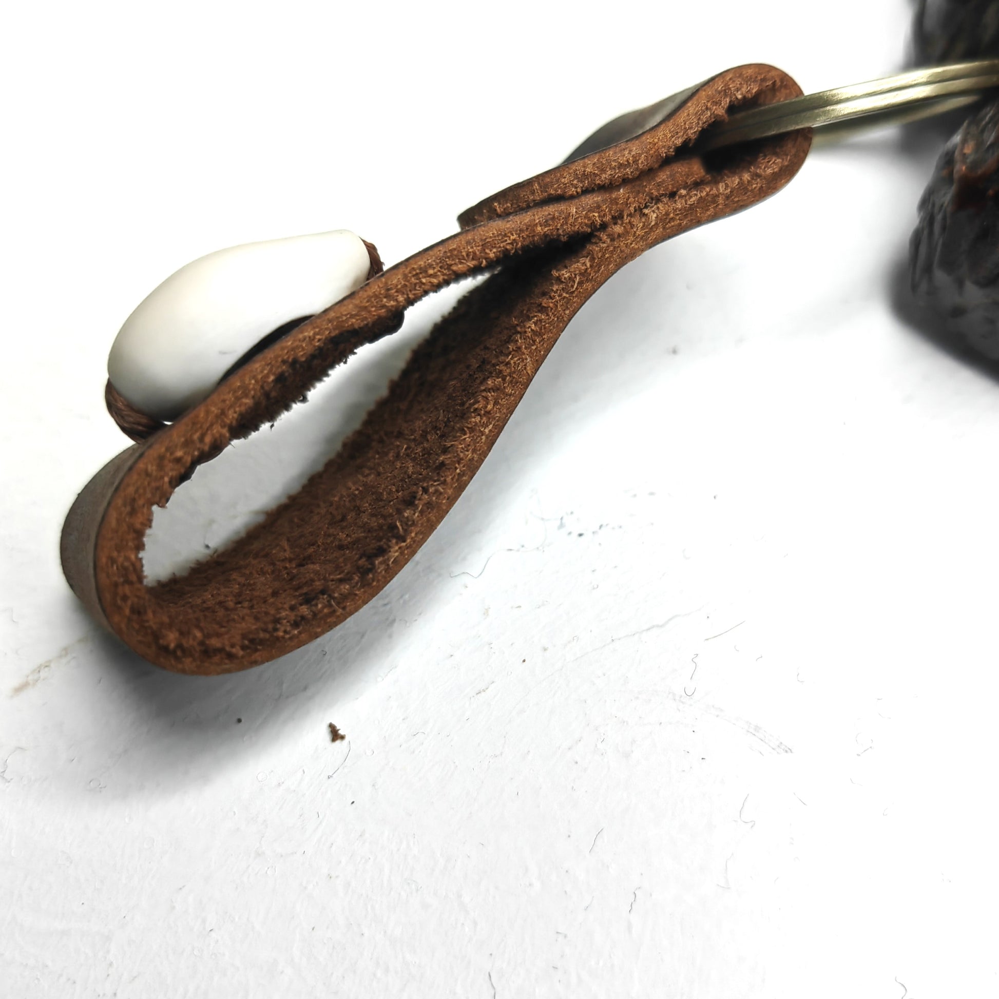 Découvrez notre Porte clé en cuir avec 1 cauris cousu comme déco.